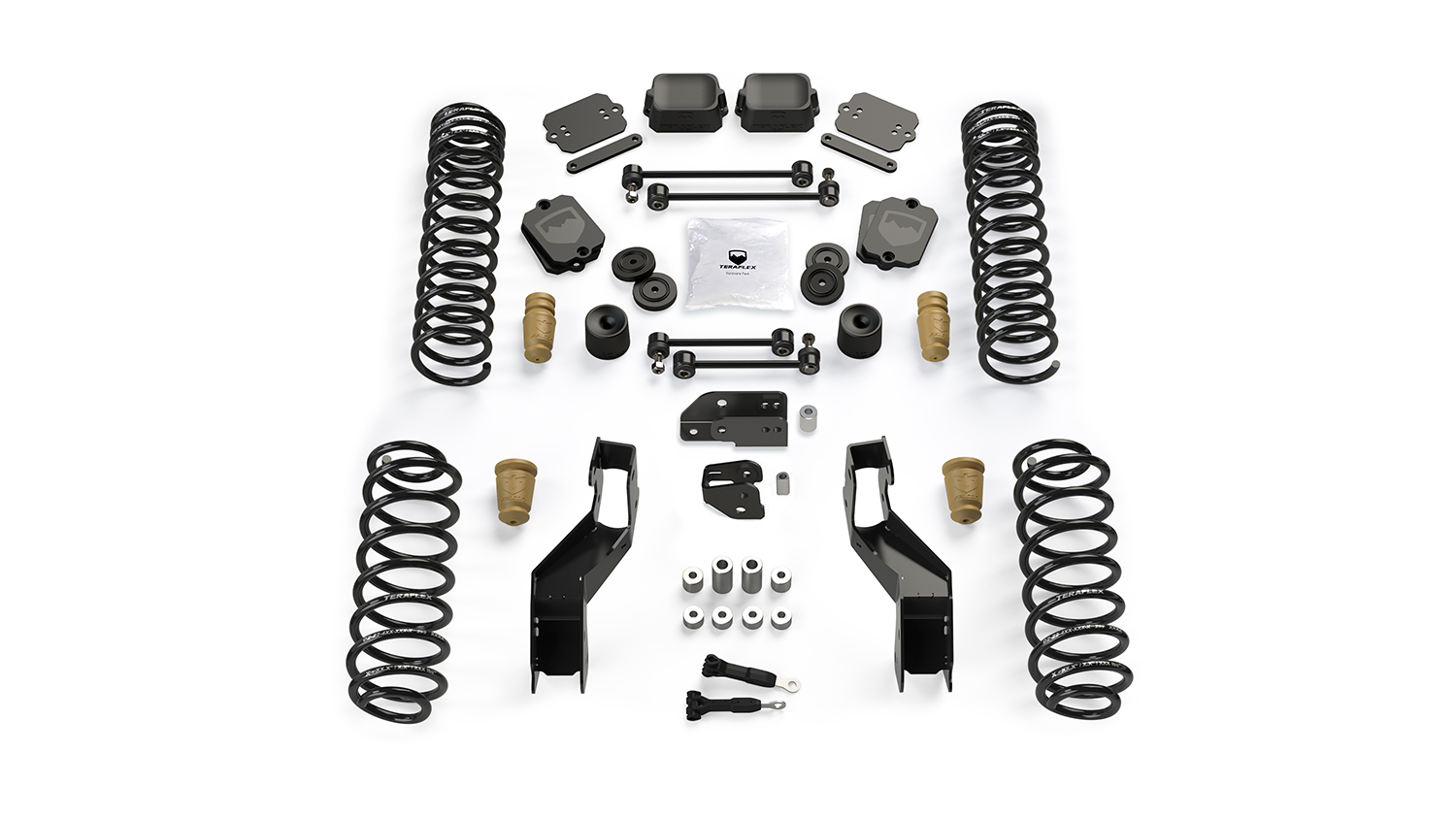 The 4,5 Inch Sport ST4 Suspension System’s higher lift height allows for larger tires and a dominating stance, while maintaining a comfortable and stable ride on both highway and trail, TeraFlex’s robust